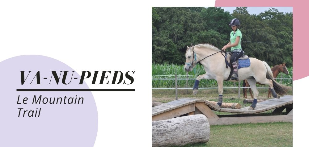 « Discipline créée en 2000 aux USA, le Mountain Trail a pour objectif d’entraîner un cheval d’extérieur sur un parcours reprenant pratiquement tous les obstacles que pourrait rencontrer un cavalier et son cheval en situation de travail ou de randonnée (ruisseau, pont, troncs, …).